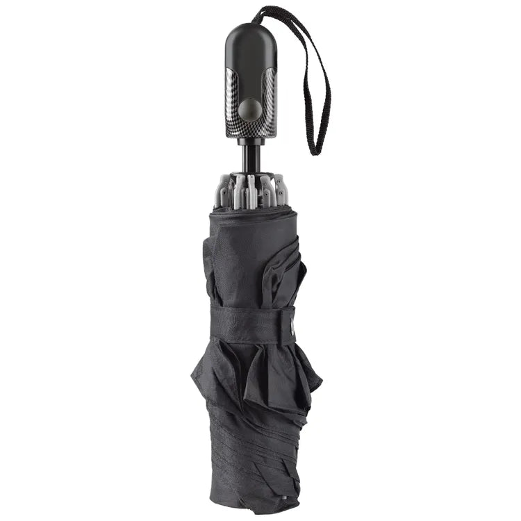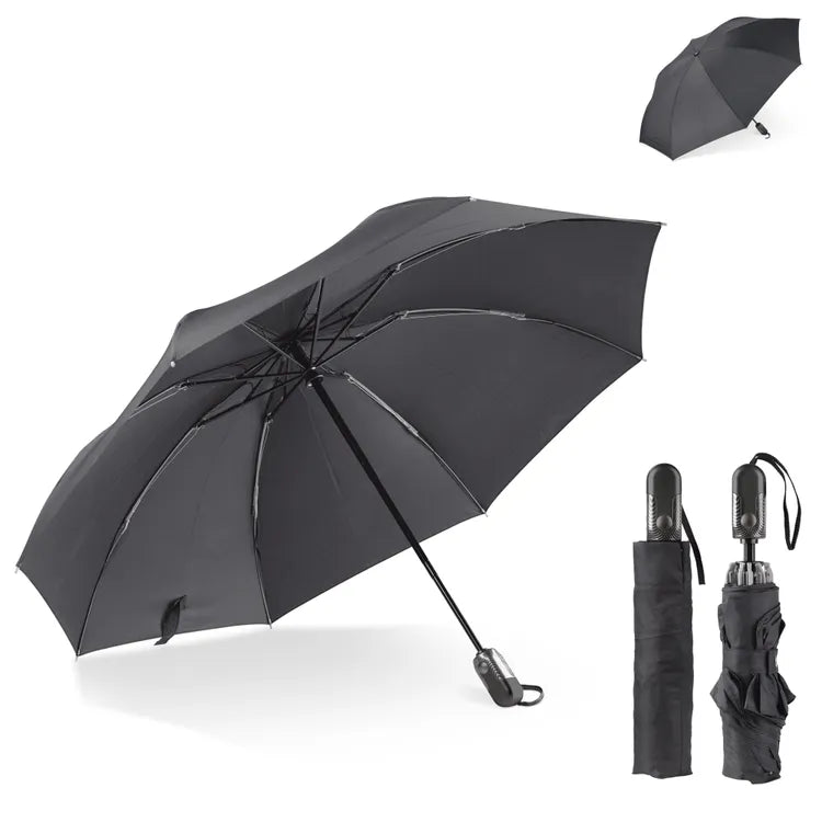 Detta vändbara paraply viks på ett sådant sätt att vattendropparna inte får dig blöt medan du stänger den efter användning. Paraplyet öppnas och stängs automatiskt och har en glasfiberram.