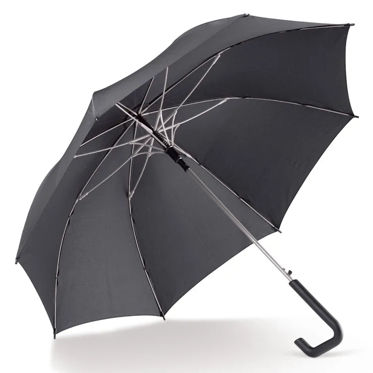 Snyggt paraply med ett slående designat krokhandtag. Den färgglada ramen är gjord av glasfiber för att ge den extra styrka.
