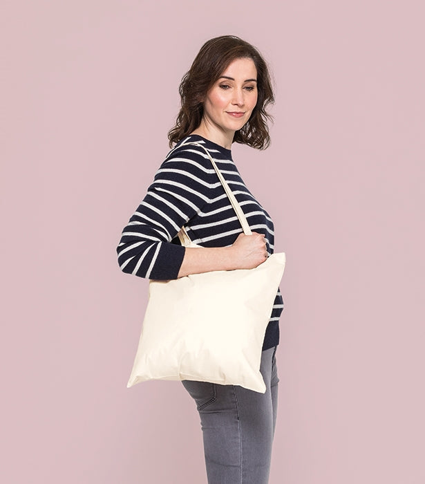 Tygkasse i kvalitets-bomull. Handtagens längd 67cm. Kan bäras i handen eller över axeln.